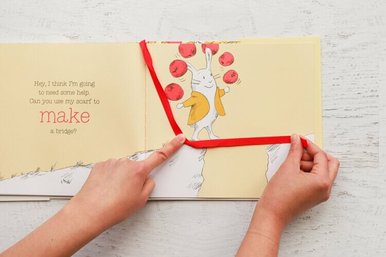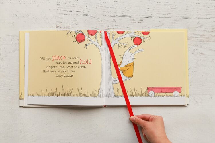 The Hungry Bunny book is like a book and a toy all in one! It’s a fun read anytime, especially for Autumn with the many golden leaves and red apples throughout the book. GRR, the story is about a bunny with a rumbling tummy who needs help picking apples so his mom can bake a pie. My favorite part of Hungry Bunny is that I get to help — I get to shake the book to make apples fall from the tree, blow leaves out of the way, tilt the book to give the bunny a boost, and even help him along the way by using his scarf as a tight rope (there’s a red ribbon attached to the book that you’re supposed to pretend is the bunny’s scarf). There are many others ways I get to help too but I don’t want to spoil the surprises for you.